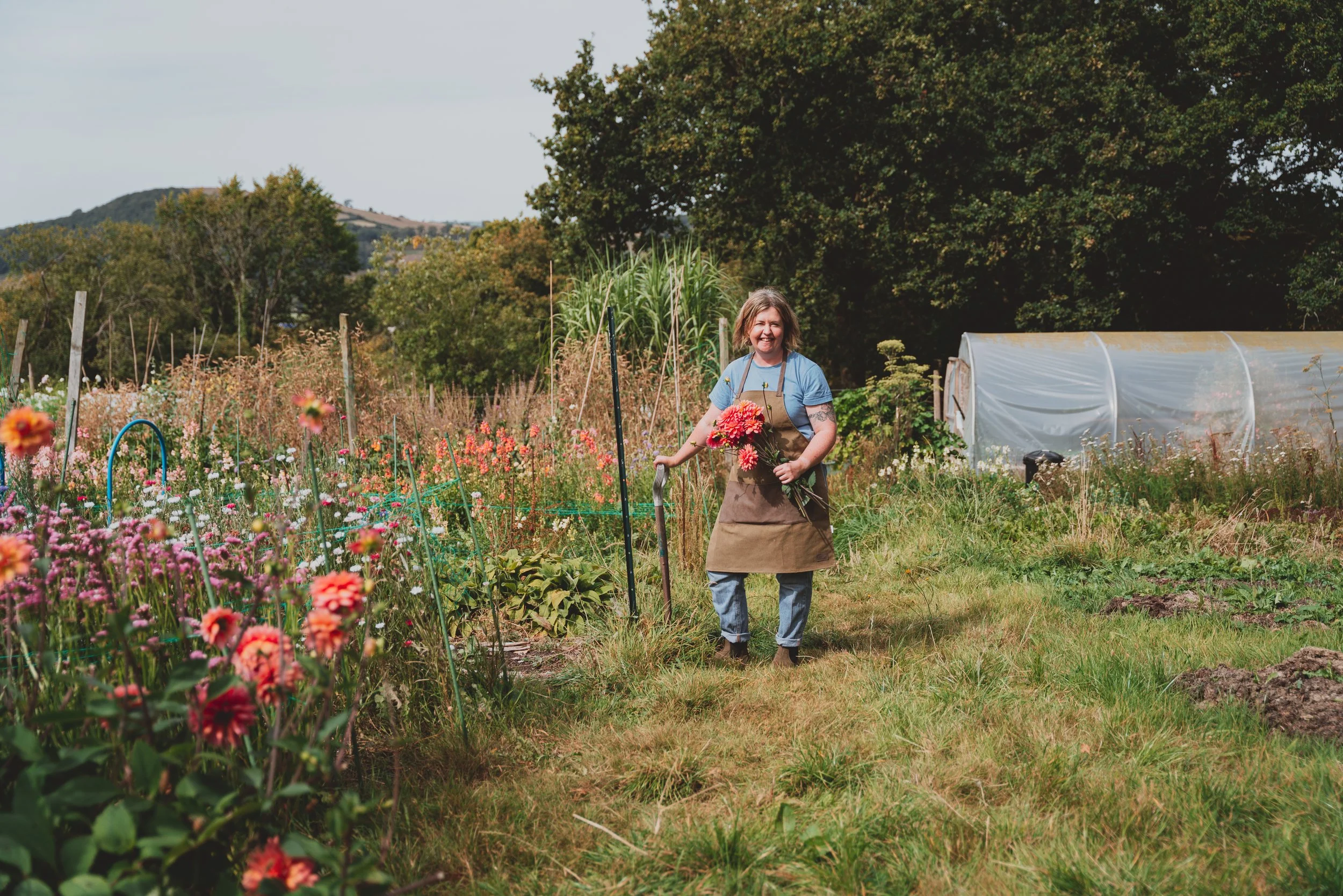 Hello, I’m Lowri and I run Blodau Caredig. I started Blodau Caredig in 2023 after becoming more aware of the environmental cost of having flowers flown in to the UK and the journey (and chemicals) they take to arrive at the kitchen table. I found it hard to find local flowers and with a dream of starting a business which took me outside and making a positive environmental impact - and working with something I love… so Blodau Caredig was born!